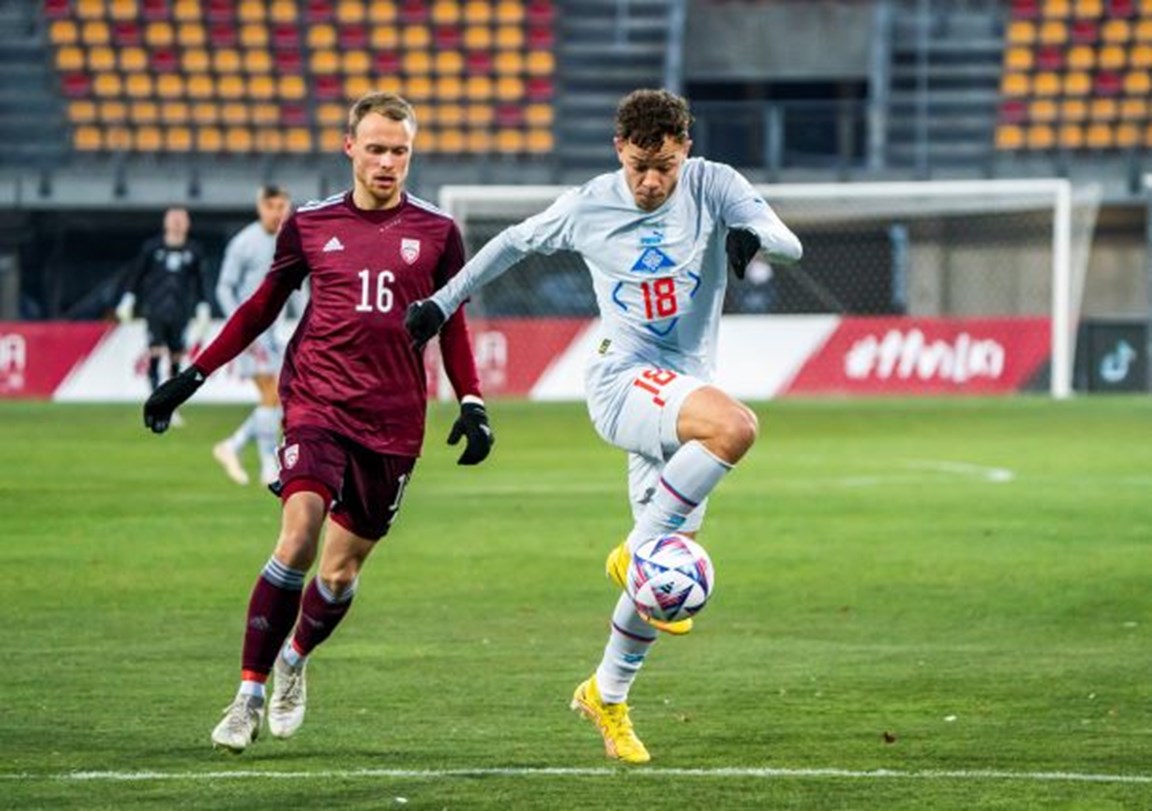 Íslenska liðið var mun sterkari aðilinn í leiknum og átti meðal annars þrjár tilraunir sem fóru í markstangirnar, auk annarra færa sem ekki tókst að nýta. Heimamenn misstu mann af velli í fyrri hálfleik og íslenska liðið náði forystu með marki Ísaks Bergmanns Jóhannessonar úr vítaspyrnu. Lettar jöfnuðu metin gegn gangi leiksins eftir mistök í íslensku vörninni og ekki voru fleiri mörk skoruð. Því var gripið til vítaspyrnukeppni og þar hafði íslenska liðið betur, skoraði úr átta vítaspyrnum áður en Patrik Sigurður Gunnarsson varði áttundu spyrnu Lettlands og tryggði íslenskan sigur í Eystrasaltsbikarnum.