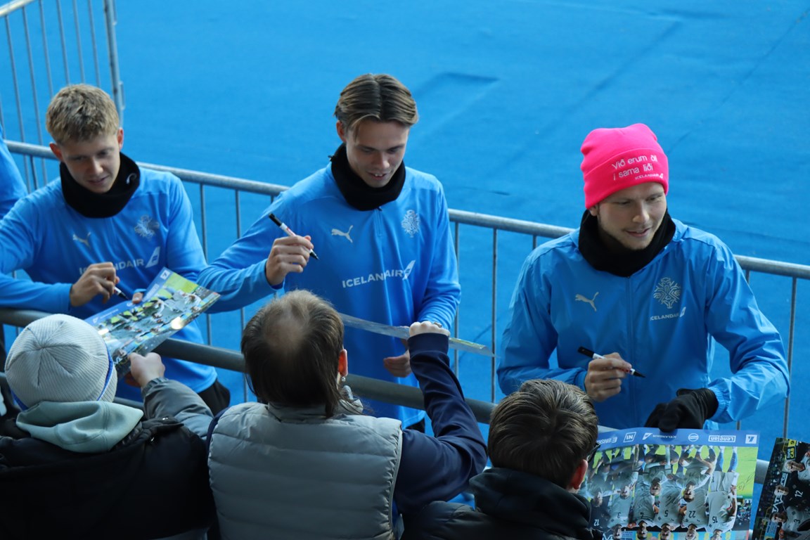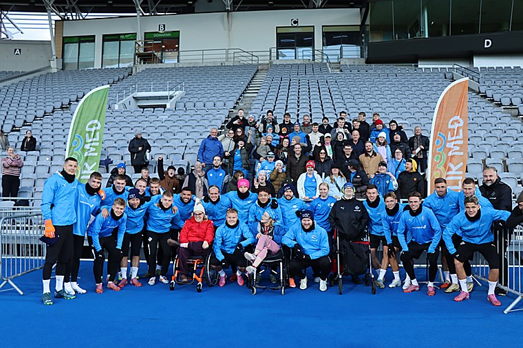 Strákarnir okkar fengu góða gesti á fyrstu æfinguna – um 40 knattspyrnuiðkendur með fötlun og aðstandendur þeirra kíktu í heimsókn og heilsuðu upp á leikmenn og þjálfara.